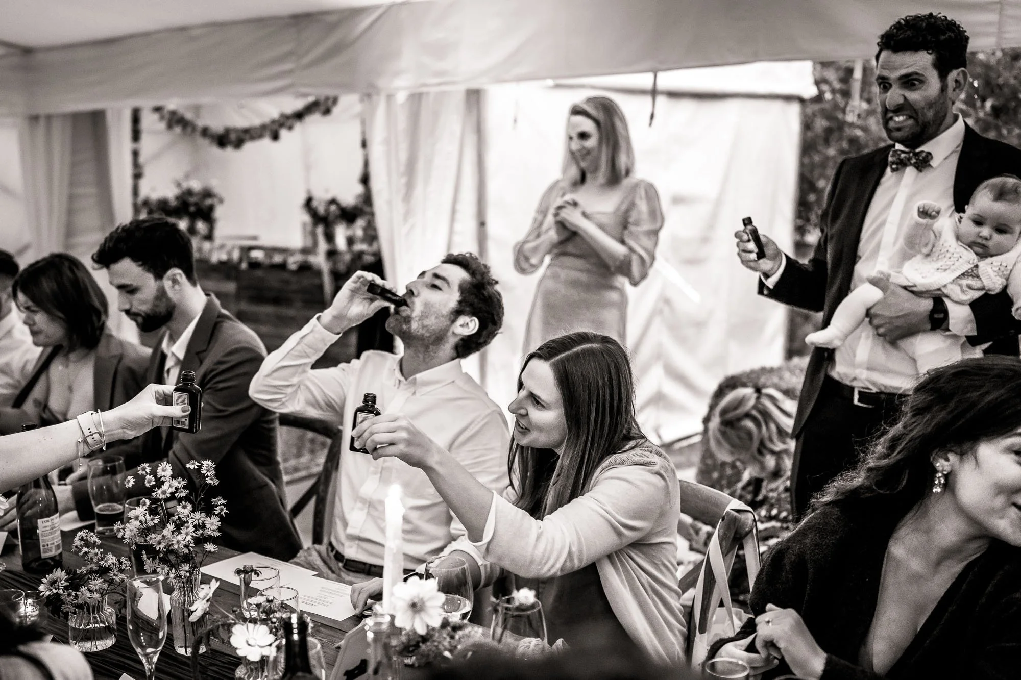 Following the ceremony, the reception was held at the family home with all the guests helping out and carrying their chairs over the road from the pub, adding yet another unique personal touch to the day's celebrations. The joy and warmth radiating from everyone as they celebrated George and Cathy's love was a beautiful sight to capture. The reception was a perfect blend of lively celebration and heartfelt moments, creating a plethora of wonderful memories for the couple and their loved ones.